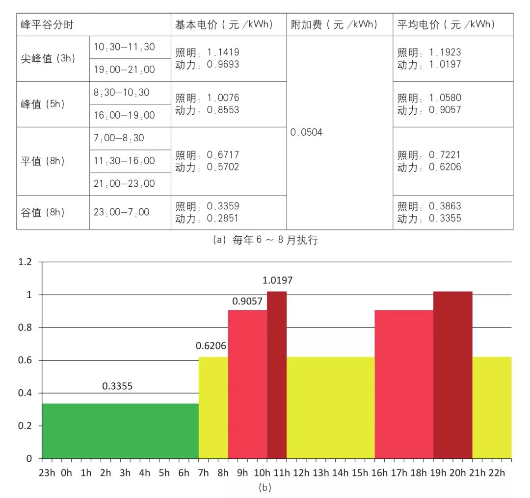 图3 山东地区峰平谷分时电价表(a)、峰平谷电价分布图(b)