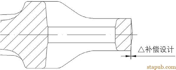如图11所示,小头是楔形类的连杆,切边冲孔极易变形,导致分模面上下形状不对称,划线表现为锻件错差,通过模具对应部位的补偿设计,弥补了切边冲孔变形量,确保错差量在公差范围内。